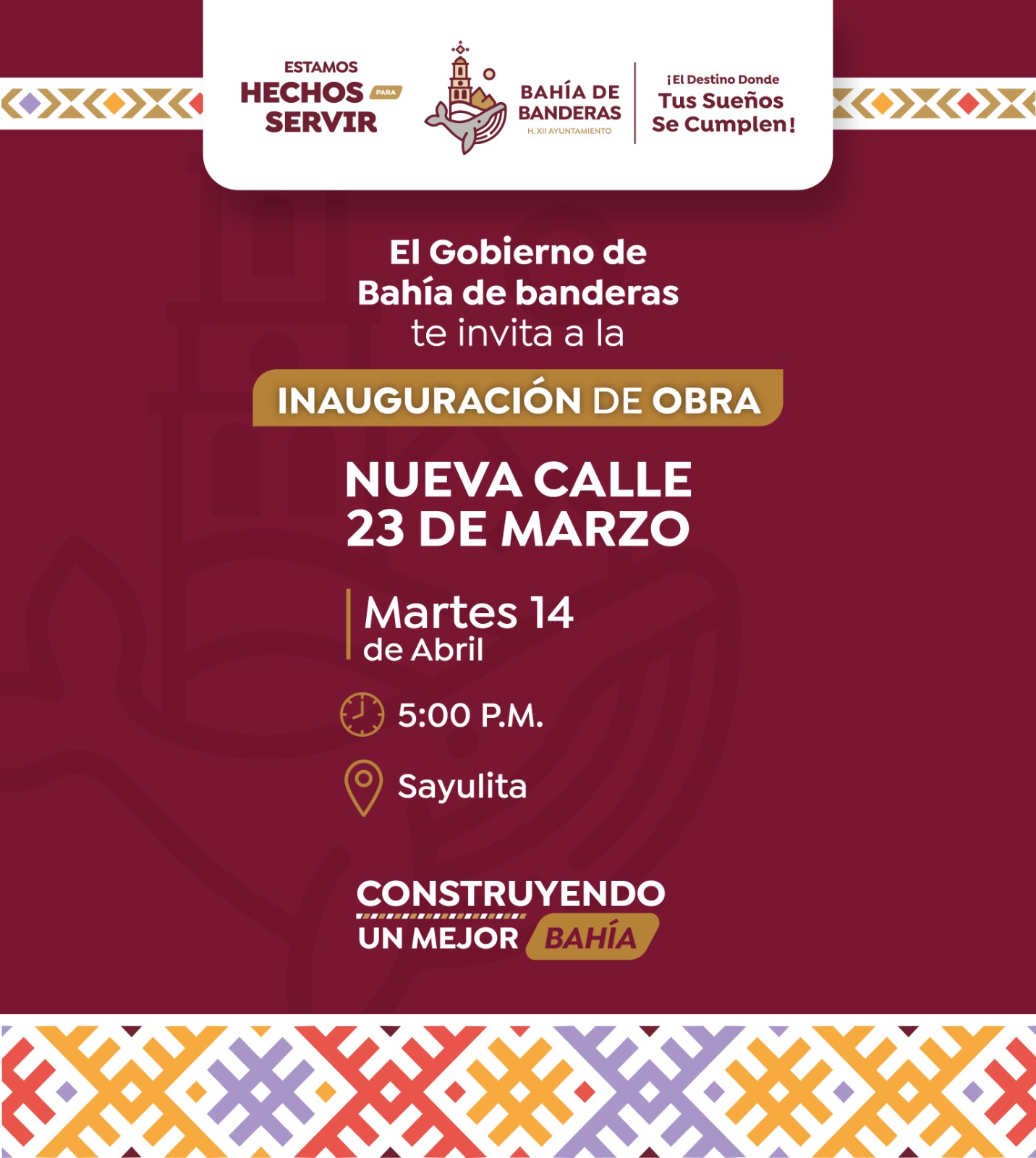 El Gobierno Municipal de Bahía de Banderas invita a la ciudadanía a asistir a la inauguración de la nueva calle…