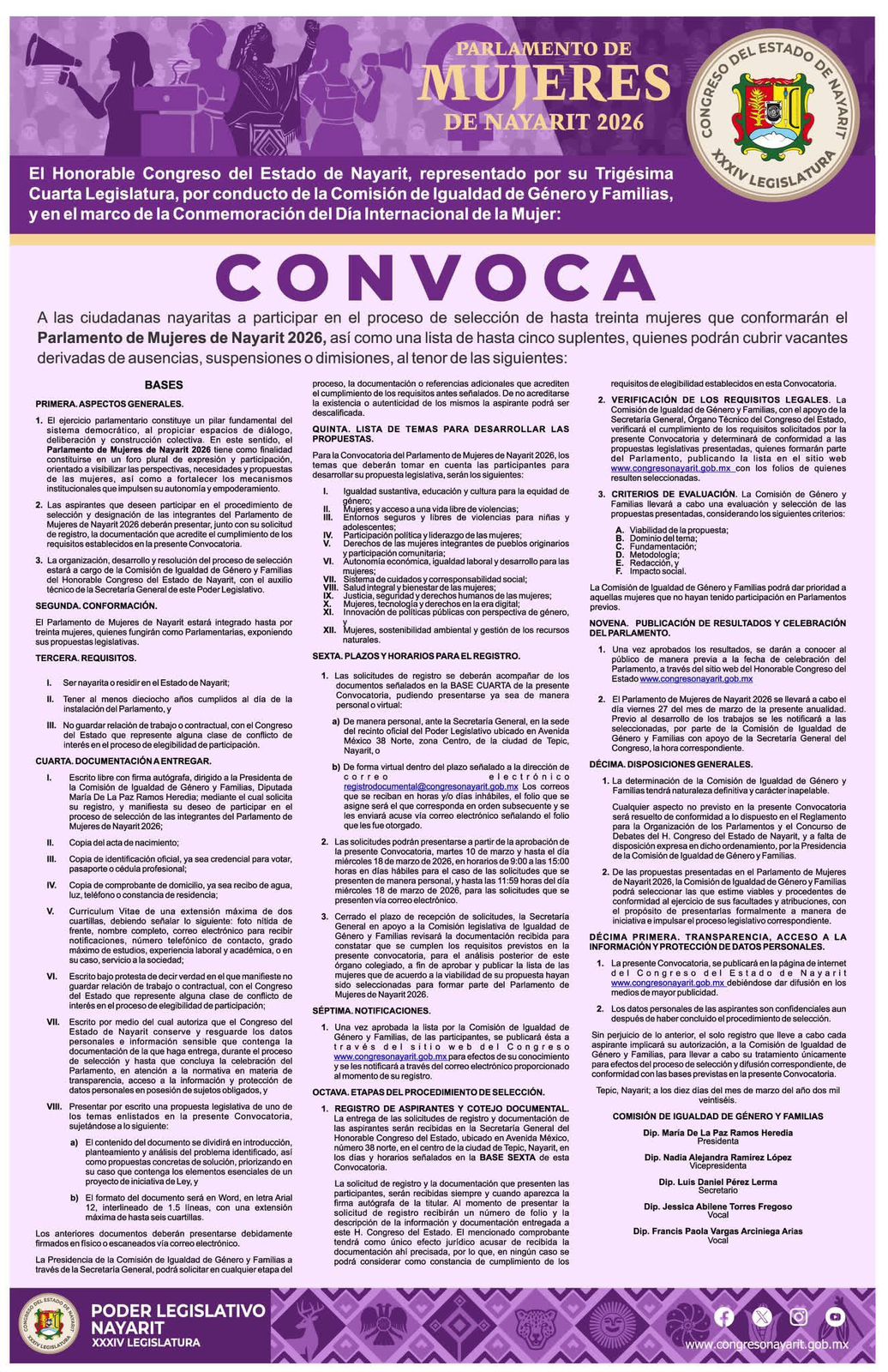 El Honorable Congreso del Estado de Nayarit, a través de la Comisión de Igualdad de Género y Familias de la…